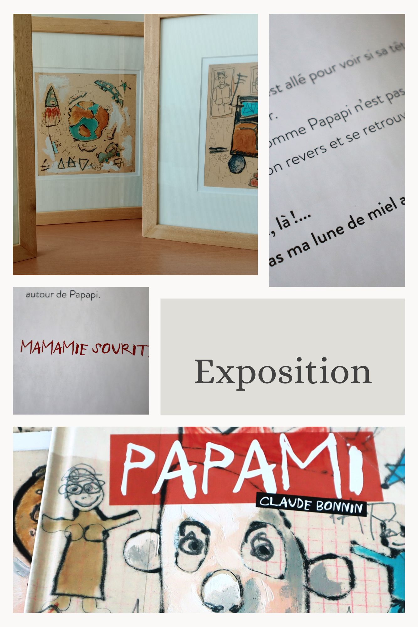 Exposition mise à disposition par son auteur Claude Bonnin . Elle comprend les 13 planches originales du livre " Papami " édité par Marmaille et Cie.
